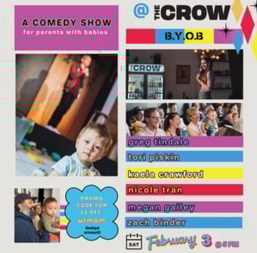 An early show for parents with babies! Enjoy a dirty* comedy show in the middle of the day instead of crying in the corner while your baby doesn't nap.