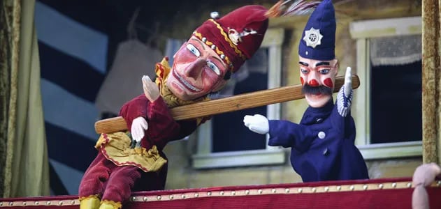 Who am I to judge these iconic duos? I don’t know, but here I go! Punch and Judy, while impressive in their longevity, seem to celebrate an orgy of domestic violence, child abuse, animal brutality. It’s ironic finding out that beating up police is so deeply entrenched in the culture of the colonizer. I know I am not alone in my misgivings over the sordid puppet duo, there have been countless calls to ban the puppets, though very few took hold.