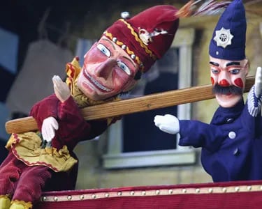 Perhaps the longest running comedy duo on earth is none other than Punch and Judy. Their immortality as puppets poses a serious advantage over the other duos who sought longevity in this cruel world. Coming out of the Italian Commedia Dell’arte tradition, Punch the puppet showed up as a bachelor on scene in the 1600’s. But when Italians fled to Britain due to war in the 1660’s, he started showing up in English theatres. The shows were outrageous and slapstick to the max, with no shortage of violence, tasteless jokes, cheating and lying. The public was delighted. Punch came known to walk around with a stick (the slap stick) that he would use to beat his new wife, Judy, who entered the picture in the 1700’s - but don’t worry, Judy subverted gender norms by beating him back.