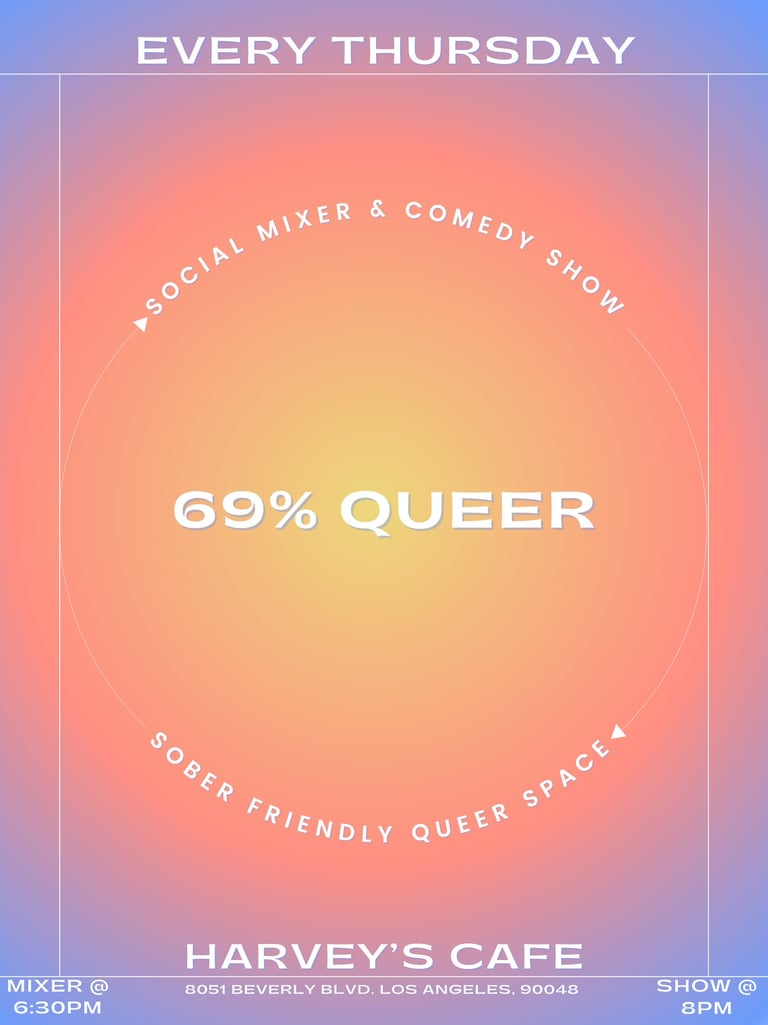 69% Queer is an event that is meant to connect the queer community of Los Angeles through games and laughter, in a chill and sober friendly space. Even if you don't identify as queer, we'd love for you to come make friends. Allies are more than welcome :)